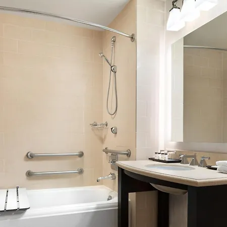 Some of the 285 smoke-free rooms at the hotel are furnished with a writing desk, and appointed with coffee/tea making equipment. Guests can also use a roll-in shower and a separate toilet, along with such amenities as bath sheets and towels.